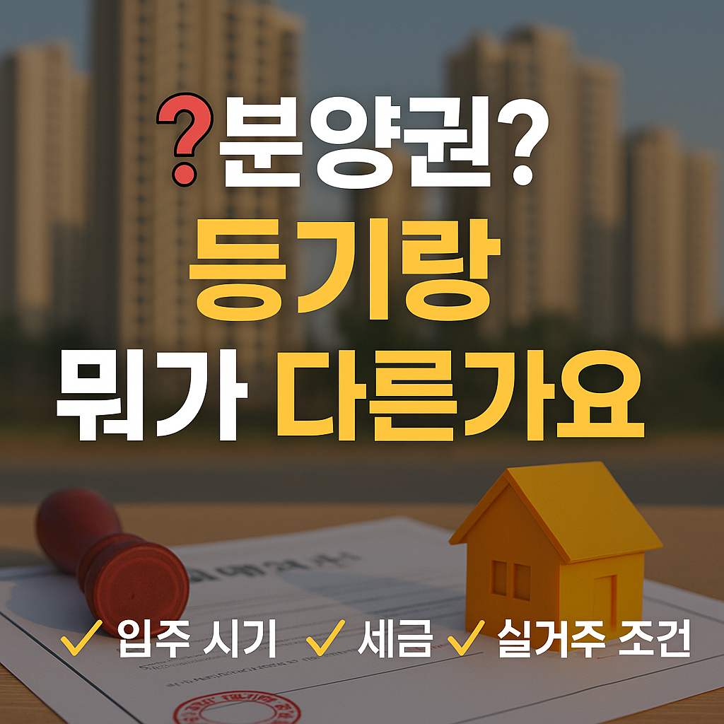 아파트를 사고파는 과정에서 자주 듣게 되는 말 중 하나가 바로 '분양권'과 ‘등기된 아파트’입니다. 둘 다 부동산 거래 대상이지만, 법적 권리와 세금, 실입주 가능 여부에서 큰 차이가 있죠. 아래 표를 통해 핵심 차이를 먼저 정리해 보고, 각 항목에 대해 하나씩 설명해 드릴게요.