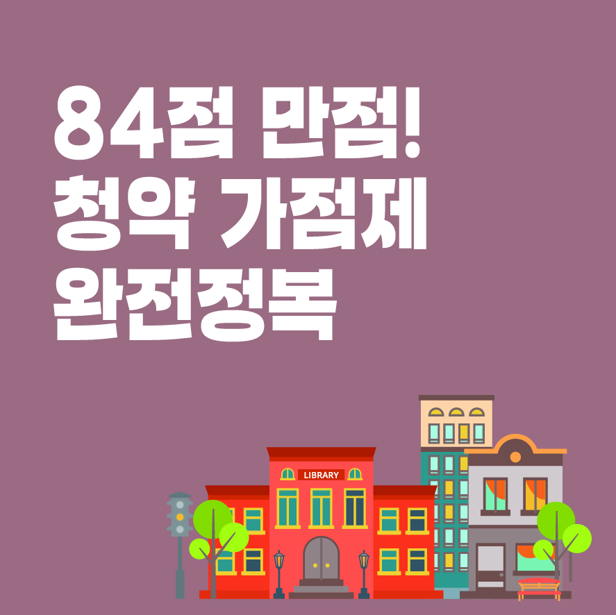 청약 가점제는 무주택 기간, 부양가족 수, 청약통장 가입 기간 이 세 가지 항목으로 구성되어 있으며, 총 84점 만점으로 점수를 계산합니다.